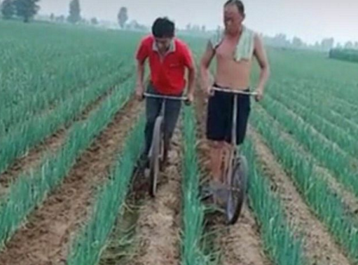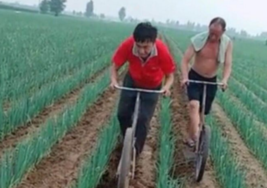 奇葩的事情随处可见 菜地骑自行车你见过吗