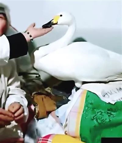 当地一位85岁的老人因心脏病突发去世,3月9日要出殡。就在3月9日当天凌晨,院里飞来6只天鹅,其中一只还飞进了老人生前居住的屋里,任凭人们怎么赶都不走。