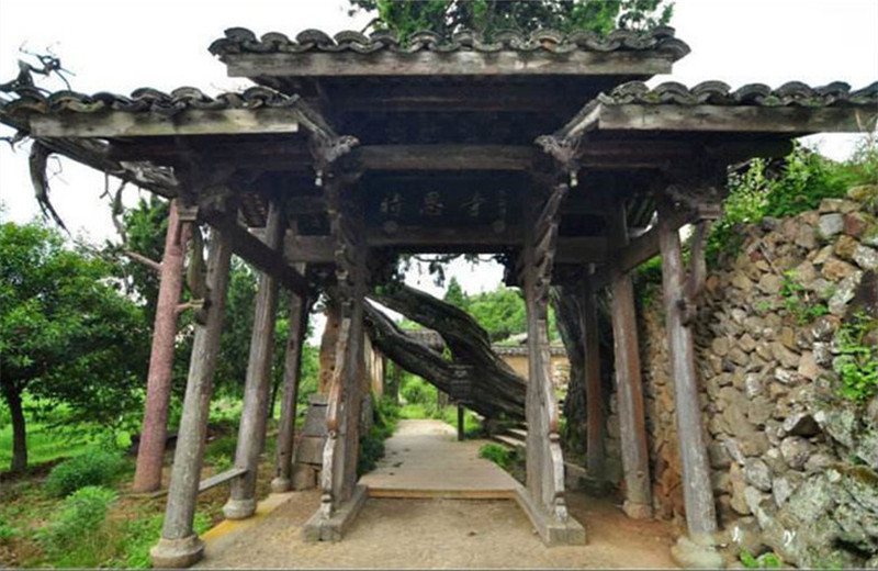 这棵树就是“坚强树“,位于大祭乡西二村南端的时思寺附近,时思寺是景宁的一个著名古建筑,虽然是宋绍兴十年的时候建造,但在明清的时候被重新续建,在这里一直有个传说,宋朝的时候,这里有一个六岁的儿童为受祖父的墓,在这个荒郊野外守孝三年,当时的皇帝听闻了这件事,特封他为孝童,时思寺就是当时男童的住所,所以才叫这个名字。而在如今,身边的这个坚强树也如同当年的孝童一样,守在寺旁。