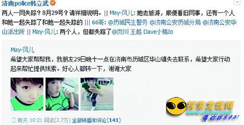 据此前警方公布的信息,失联女孩穆某的遗体,于3日上午在济南小清河华山洪园段被发现。昨天下午,济南警方表示,与穆某一同失联男子的遗体,于8月31日晚在小清河河面被发现,两具遗体发现于同一条河中。