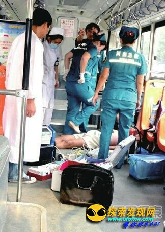 郑州市一辆919路公交车行驶至中原路秦岭路路口时,车上一名老人突然倒地猝死
