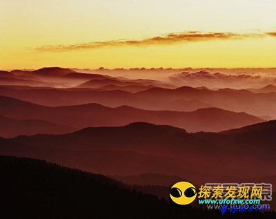 站在群山之中,远眺旭日东升,图中的这番美景正是拍摄于大烟山国家公园。