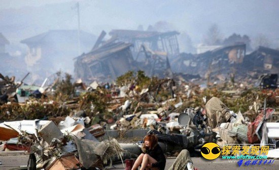 一位在 2011 年日本东北海啸中失去家园的女性,坐在瓦砾中哭泣 by Asahi Shimbun, Toshiyuki Tsunenari /AP