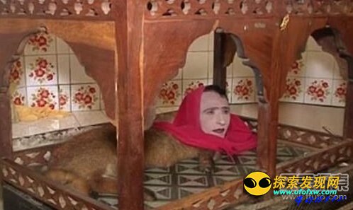 当你进入到卡拉奇动物园,一定会被Mumtaz Begum吸引目光,组织者用扩音器吸引人们的关注。进入她所在的房子Mumtaz Mahal后,你会看到台子上放着一只狐狸。突然,一张“女人”的脸不知从哪里冒出来,正好出现在狐狸脸应该在的位置。