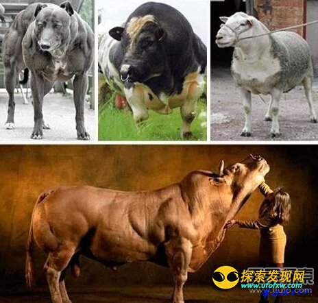 β蛋白的缺少使得这些动物体内的肌肉会无休止的生长,以至于使得这些动物长出一副另类的体态。