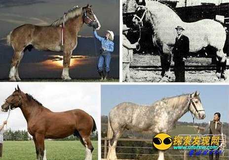 马是人们的亲密伙伴。马以它们强壮的体魄帮助人类完成农业及运输活动。上图中是世界上体型较大的几个马品种。