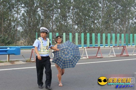 商丘一名28岁女子,与丈夫吵架后,一气之下,脱掉身上所有衣服,一丝不挂地在连霍高速公路裸奔,引得司机纷纷刹车减速观望,险酿车祸,为防止司机走神发生车祸,巡逻至此的高速交警,急用雨伞遮挡女子身体,将其护送下高速路。