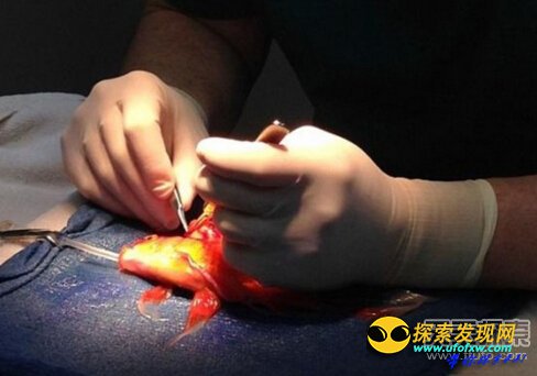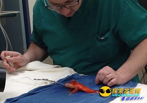 澳大利亚一条金鱼的主人不愿见死不救,让它在动物医院接受了脑瘤切除手术