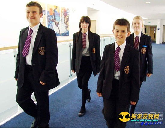 英国校服款式经典、简洁大方,中学生必须穿着正统西式校服,男生为正统西装、正规皮鞋、需要佩戴领带;
