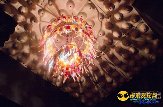 与传统酒吧不同的是,这家新开张的酒吧以乳房为主题,酒吧内部的所有装饰均与乳房有关。