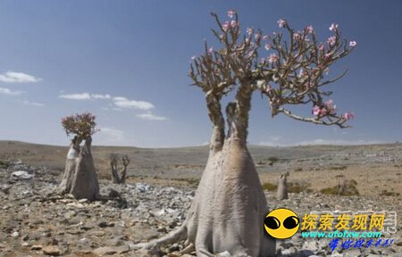 沙漠玫瑰拥有引人注目的球状树干,生活在岛上的人们把芦荟入药,并制成化妆品。
