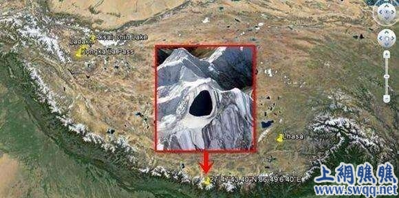 在GOOGLE地图上有一处被涂黑的神秘区域,位于27°47'43.40''N 86°49'6.40''E,尼泊尔萨加玛塔国家公园(Sagarmatha National Park),高6685公尺,因山形独特,又称雪鞍(Snow Saddle)。