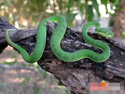 白唇竹叶青,体长60--75厘米,尾长14--18厘米,体重约60克。头呈三角形,其顶部为青绿色,瞳孔垂直,呈红色,颈部明显,体背为草绿色,有时有黑斑纹,且两黑斑纹之间有小白点,最外侧的背鳞中央为白色,自颈部以后连接起开形成一条白色纵线,腹面为淡黄绿色,尾端呈焦红色。