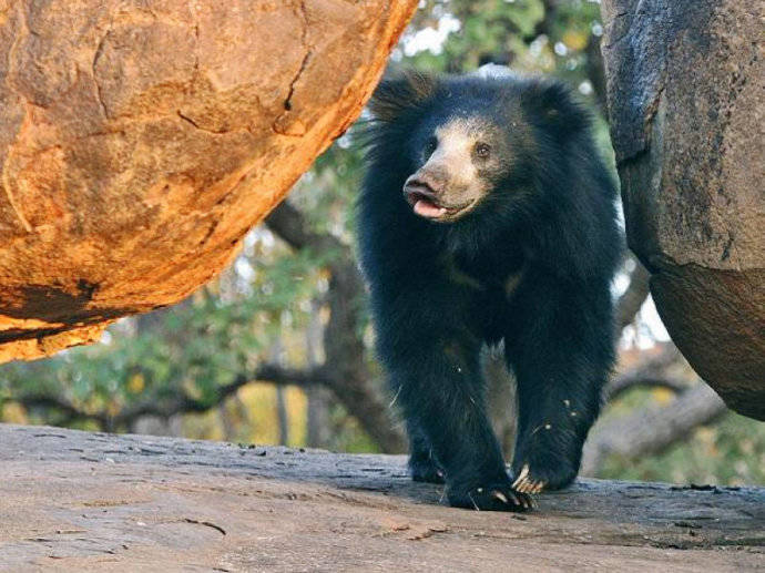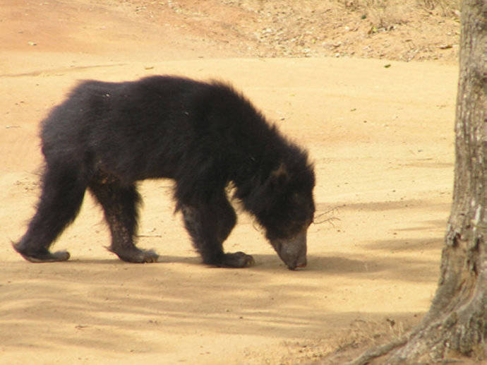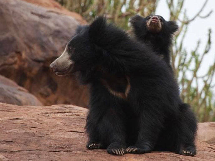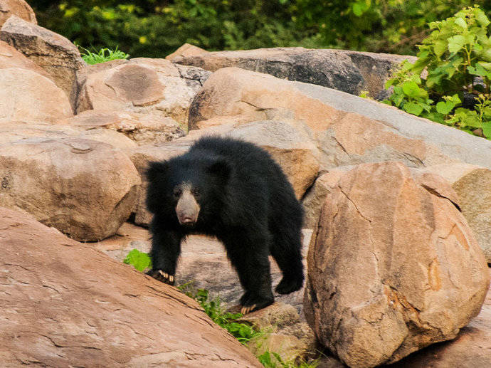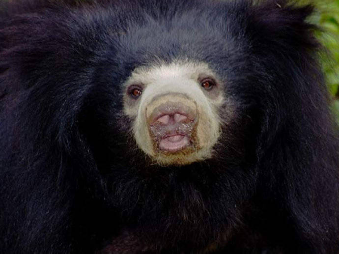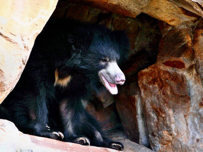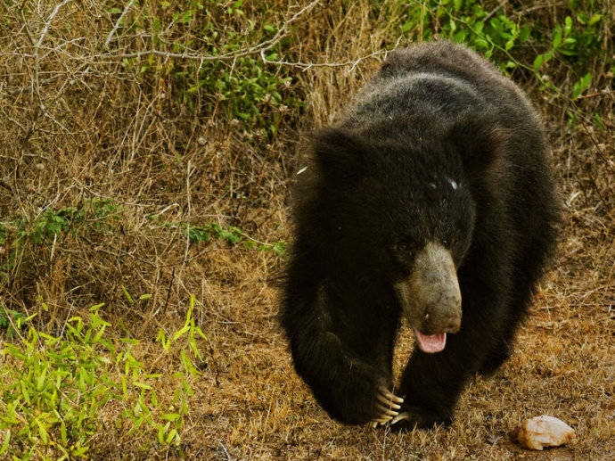 懒熊(见上图),别名斯迪克尼熊、跳舞熊、蜜熊(马来熊的俗称)等,为食肉目熊科懒熊属单一物种,是熊科食性非常特殊的熊之一,虽其他熊类也吃白蚁、蚂蚁等昆虫,但只有懒熊基本上以昆虫为食。起初,自然学家认为懒熊应被列为树懒科而非熊科动物,因此造成这种物种曾被多次重命名。到了1790年,懒熊首次被带至欧洲后,被命名为Bradypuspentadactylus,其含义为“五指树懒”,“懒熊”和“像熊的树懒”。而在僧伽罗语和淡米尔语虽名称各有不同,但是其意义都相同,意即“熊”。