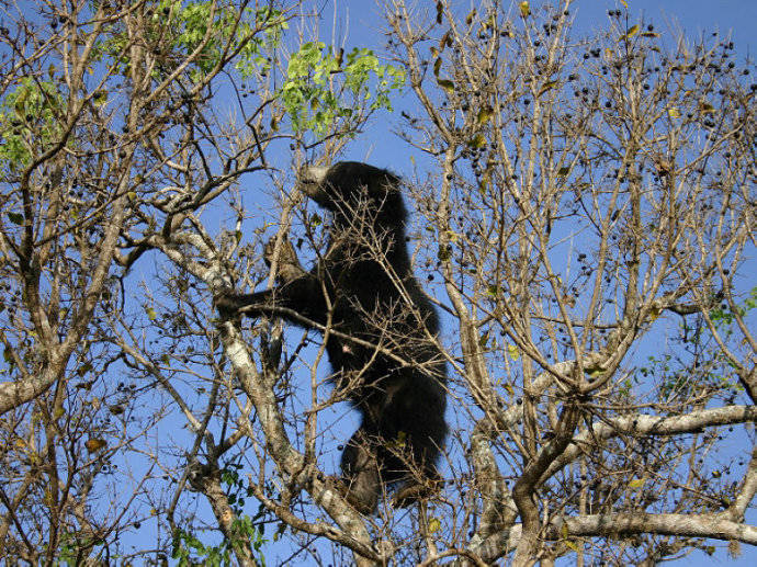 懒熊擅长爬树,即使不是为了躲避危险,也在树上进食和休息。能跳过长达10英尺的距离,然后像树懒一样倒挂着。标记自己地域的方式有两种,一种是打架,另一种是靠着树摩擦侧腹。睡觉时也总是发出很大的呼噜声,因而循着声音往往能找到它。