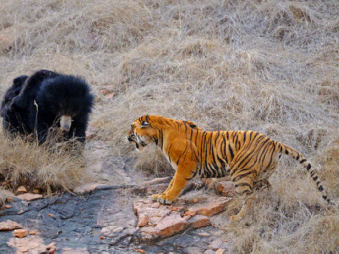懒熊自然界天敌主要是虎,雄虎对懒熊有压倒性优势,有过不少猎杀懒熊的记录。但雌虎在同懒熊的冲突基本没什么优势(当然这可能与虎的谨慎性格也有关系),少数比较强悍的懒熊甚至夺走过一些雌虎和亚成体虎的猎物。比较罕见的情况下有懒熊杀死公孟加拉虎的记录。