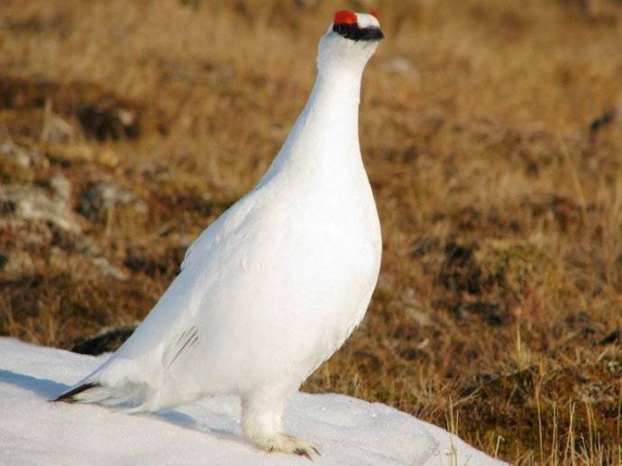 白色是北极动物的名片,如雪雁、雷鸟。鸡形目松鸡科的3种雷鸟冬季羽毛白色,与雪地相一致;春夏则为带横斑的灰或褐色,如岩雷鸟(见上图),全长约40厘米,似柳雷鸟,冬羽白色,嘴角至眼后有一条较宽的黑色过眼纹,但夏羽甚为灰暗而冬季眼先黑色而非白色,不惧生,极耐寒,主要分布于北极苔原冻土带和高山的树线以上,在中国仅见于新疆西北部的阿尔泰山地区,在中国分布区狭窄,数量稀少,为国家二级保护动物。鸮形目鸱鸮科雪鸮属的雪鸮(见上图),别名雪枭、白猫头鹰,体长约为50-71厘米,翼展125-165厘米,体重1.6-3千克,通体几乎纯白色,体羽端部近黑色,头顶、背部、双翅、下腹遍布黑色扇形斑点,雌鸟和幼鸟的黑色斑点更多,翅宽头圆形,不具耳羽束,主要分布于环北极冻土带以及北极圈内的不被冰雪完全覆盖的岛屿上,食物短缺时周期性南迁欧洲、亚洲和北美洲,昼行性,主要以极地常见的小型哺乳动物和鸟类为食,也猎杀野兔、旱獭、狗、狐狸和雁鸭、短耳鸮等大型鸟类,为国家二级保护鸟类。