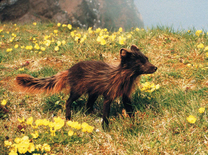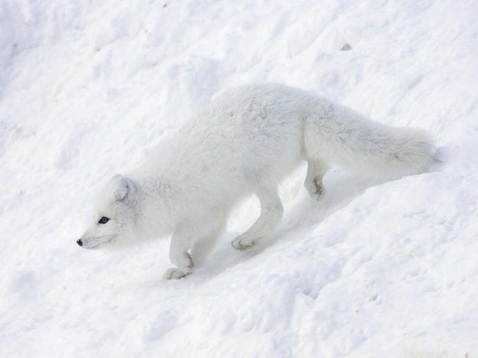 北极狐的脚底上长着长毛,所以可在冰地上行走,不打滑,耐寒,可在零下50度的冰原活动,是北极真正的主人。