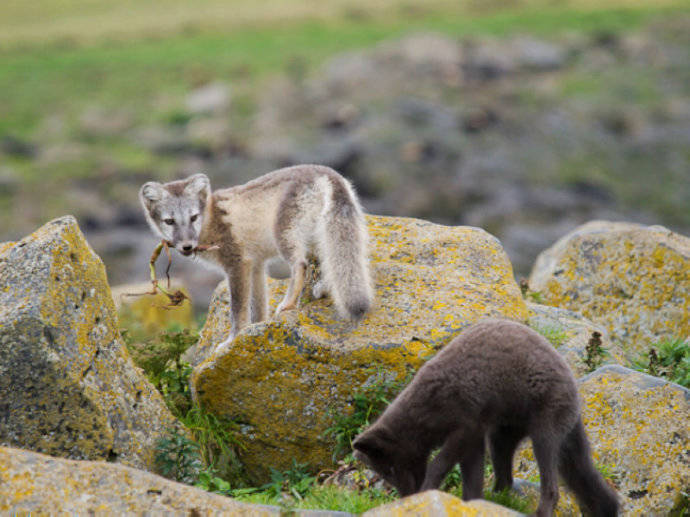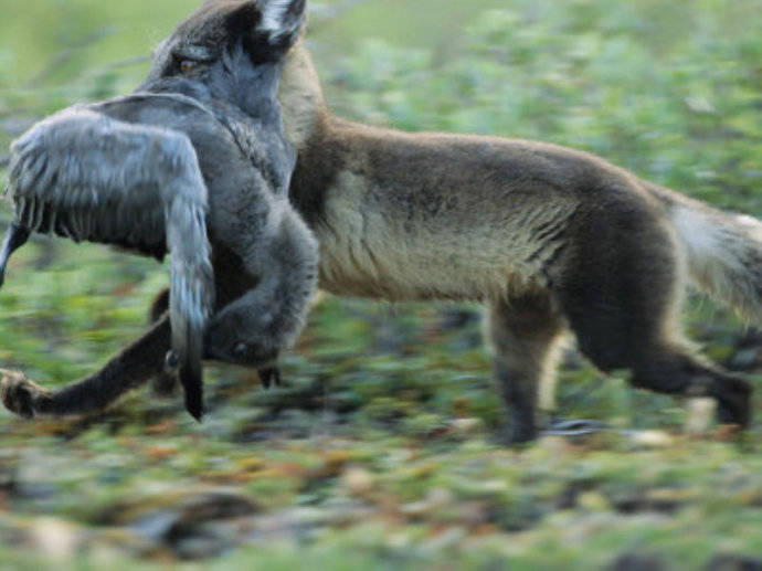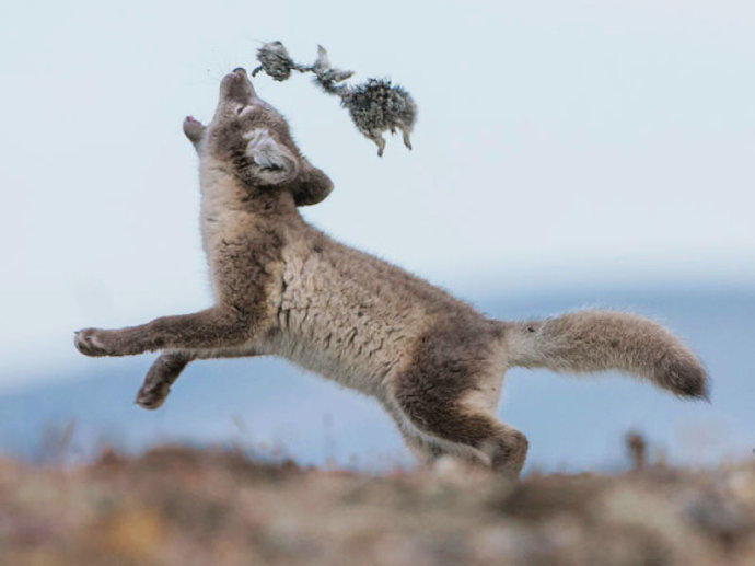 北极狐会在夏天食物丰富时,会猎杀大量猎物,并把部分食物储存在巢穴中。