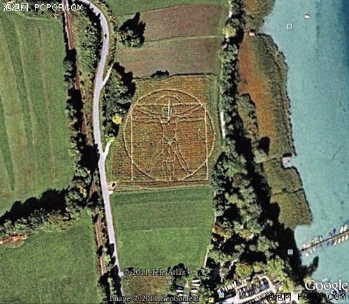 提起麦田怪圈,人们总是会联想起外星人。事实上,并不是所有的麦田怪圈都与外星人有关。在德国慕尼黑,谷歌地球就发现了一个奇特的麦田艺术。这个麦田图案是在模仿意大利文艺复兴时期伟大画家莱昂纳多达芬奇的著名作品《维特鲁威人》。这种大规模的麦田艺术通常是人们精心设计后完成的。