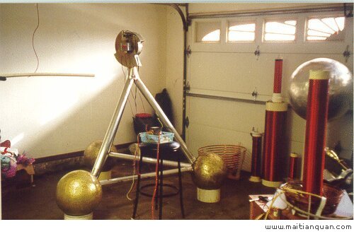 这是“UFO”的能量发动装置,由空心管道和空心球体组成。其所处方位可能是设计的关键点之一。顶部某装置向下发射微波,微波穿过内部管道并作用于其他结构,从而使超级能量被激活。