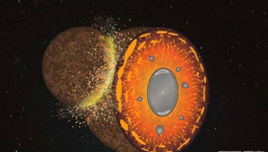 地球形成于冲积过程,由于彼此引力牵引逐渐积累了大量物质,来自加积陨石放射性和持续轰击新生地球陨石碰撞作用的热量,足以融化重物质向下沉积,最终形成地球富含铁的内核,其外侧是岩石地幔和地壳。