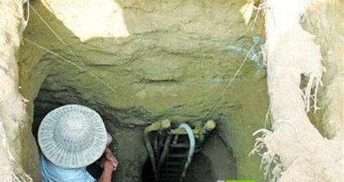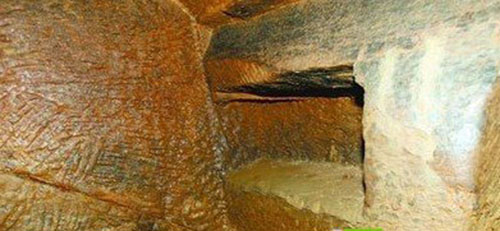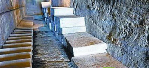 古墓入口。民国年间,山东青州一带农民在垦田时,于云门山发现一大冢,墓道之中就发现了带轴的翻板,板下有坑,坑中密布利刃。当时坑中积水甚多,待把水抽干,发现有两个人骨架一仰一趴倒毙于利刃之中,身边有铁锹、锤子、绳索等工具,显然是盗墓者所携。清理人员发现,在连环翻板之下有两架木梯相接,木梯已经腐朽,但仍能看出形状,这无疑是后来的盗墓者想出的破解之法。只要将木梯放入墓道,盗墓者沿梯而入,则如履平地,一切翻板与陷坑、利刃都枉费心机、无济于事了。