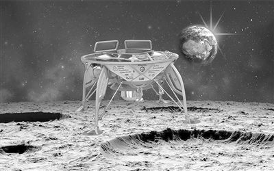 以色列“创世纪”号探测器在月球着陆(艺术构想图)。图片来源:太空网