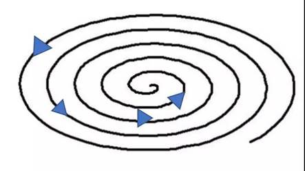 当物质进入吸积盘的时候,它们会沿着一条向内螺旋的路径(tendex line,来自于拉丁语里的“拉扯”)进入。这是由于当粒子们身处湍流之中时,它们会因为相互碰擦,摩擦生热,从而向外辐射能量。这样的行为会同时减小粒子的角动量,从而使这些粒子向内漂移,形成向内的漩涡。
