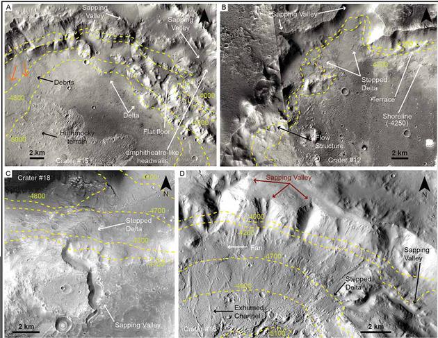 水位证据似乎证实(或者说更加接近事实)了一个真实存在过的火星古代海洋。保留下这些证据的陨石坑,很可能在这个海洋存在的同时拥有大量的水。有证据表明,水位痕迹与推定的火星海洋的水位相一致。