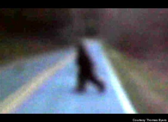 这是在2011年3月22日,于拉塞福郡的金色山谷教堂道路上拍到的雪人模糊影像。