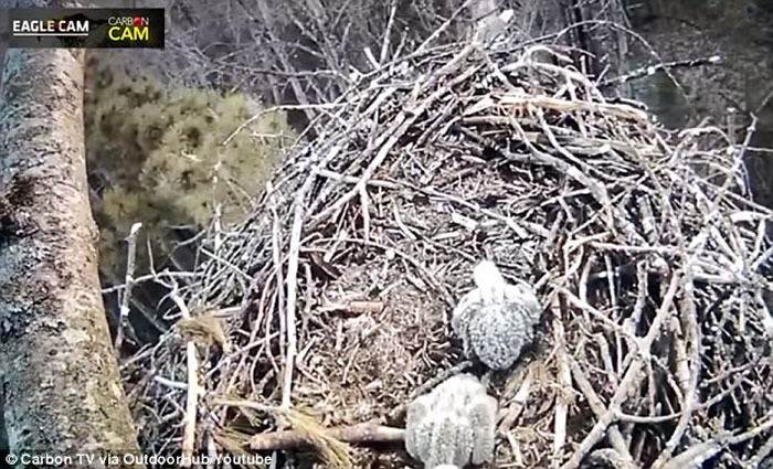美国密歇根州出现似雪人的不明生物,在鹰巢下的森林中行走