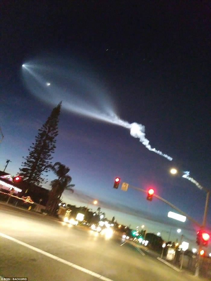 美国加州洛杉矶夜空出现壮观UFO ,原来是猎鹰9号本年内最后一次升空