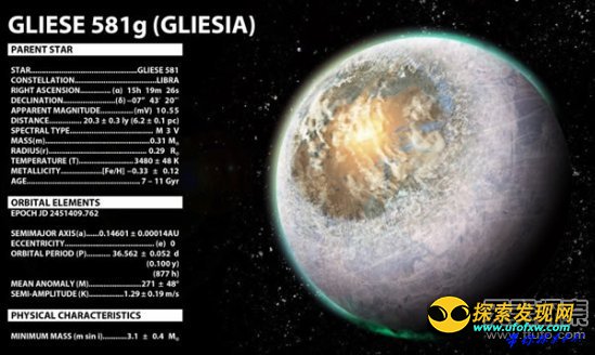 据悉,当时为了发现Gliese 581g行星,美国加州大学圣塔克鲁兹分校天文学家观察一颗环绕行星在恒星周围引力牵引作用下所形成的光线微妙变化,依据牵引波动强度,推测这颗星球体积大约是地球3倍。