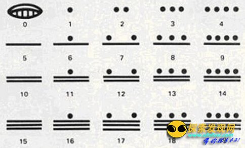 由于用了“0”这个符号,玛雅的20 进位制的数字写 法就很合乎科学要求了。玛雅人用两种方法书写数字,一种是用20个头像来表示0 到19;另一种是用横条加圆点的办法,一个圆点代表#,一个横条代表25贝壳形象符号表示" 等。这些数字可以横写,也可以竖写。