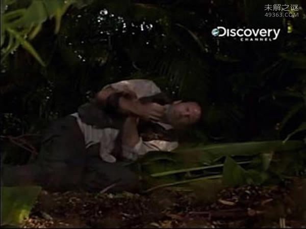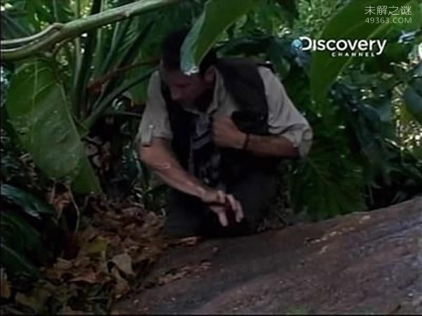 后来提姆示范古代原住民的打猎手法给大家看,方法是在树枝末端沾上一些树液,然后插进夜行性动物栖息的洞穴里,看看有没有动物会被狩猎到;当他手握树枝,奋力插进洞里时,手臂却被不知名的生物咬到。过了一天之后,提姆的伤口严重感染,他认为自己得了败血症。