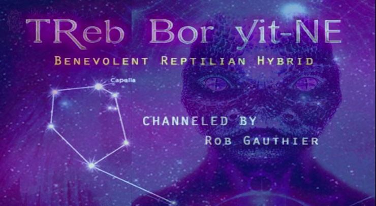 罗伯特·高蒂尔(Robert Gauthier)是美国知名的外星文明接触者,他的特异功能之一是可以与各种地外文明联系并且通过这些外星人来回答观众们的每周提问。他的网站http://www.etwhisperer.com 都会收到成百上千的来信,许多观众的问题比如“他们属于哪个星球的星际种子?自己的外星人指导灵是谁?“之类的问题都会有解答。罗伯特常联系的外星人之一就是一位来自Capella星系的人形和爬行类外星人混血种TrebBorYit-NE。Treb是一位来自第五密度非常友善的爬行类外星混血人,他是由爬虫动物的基因和一个体型较小的未来人类分支Nihal的混血外星人合成创造的。Nihal是Treb爬形类外星人的创造者。当被问到为何创造了这一支爬行类外星人时,Nihal说“因为他们想告诉银河系里的所有生命体,并不是所有的爬行类外星人都是邪恶和消极的。在一个良好的成长环境里,每个生命都是平等的,代表着宇宙造物主那纯洁的爱和光。”Treb经常出现在罗伯特的节目中很友善和耐心地回答每个观众的问题。他坚持不懈的努力为他赢得了许多的地球粉丝。