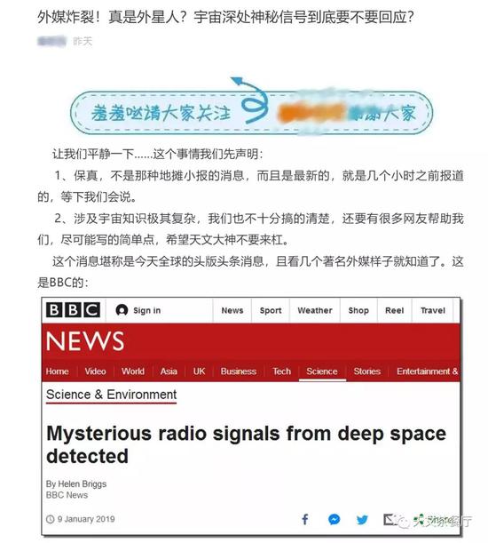 几乎全世界各大媒体都报导了一个“严重新发现”,大都标题都是“Mysterious / A Secend Repeating Signals Have Been Detected”——探测到奥秘重复信号,直到《英国卫报》、《今天美国》等报刊、网站运用“could be aliens”(不扫除外星人)、“Aliens signals?”(外星人信号?)等字眼,随后国内一些媒体和大众号也别有用心地运用了相似字眼,招引了大批不明本相的大众。那么地理学家终究发现了什么?是不是暗示了外星人呢?