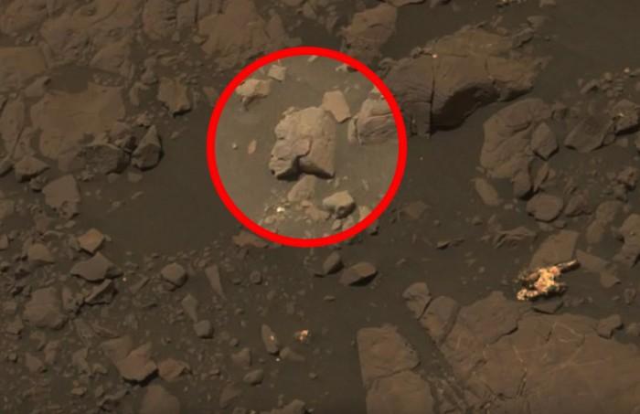 在这幅特别的照片中,一块看似正常的岩石被认为实际上是一个古老石像的残余物,“证明”这个“女武士”实际上来自红色星球。外星人猎人称,这个岩石实际上是一个头形雕刻的侧面轮廓,包括眼睛、耳朵和一个下巴线条。它隐约类似于一些古埃及雕像和纪念碑。