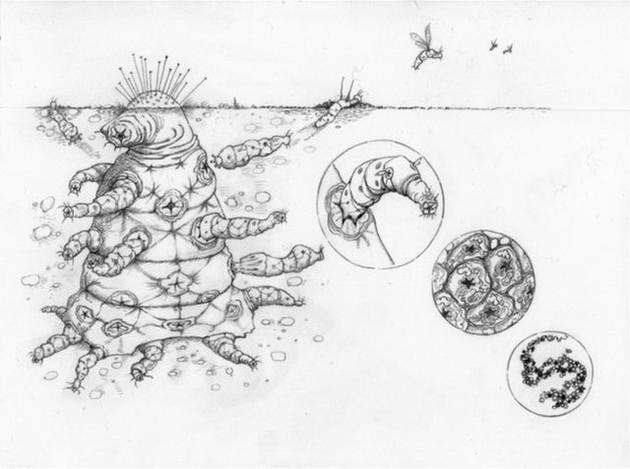 为更好地解释这一概念,勒文和同事们想象出了一种酷似块茎植物的外星人,取名为“Octomite”。这种复杂生物由众多较小的生命体组合而成,各生命体为追求共同的利益进行合作,就像人体细胞通过合作维持生命一样。