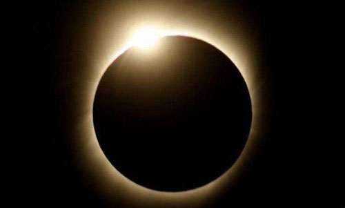大家想想看,太阳直径是月球的395 倍大,但是太阳离地球有395 倍远,那么,由于距离抵消了大小,使这两个天体在地球上空看起来,它们的圆面就变得一样大了!