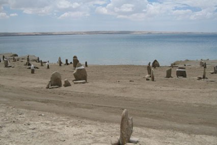 在位于柴达木首府德令哈市西南40多公里的白公山,有一对孪生湖,克鲁克湖和托素湖,一淡一咸,在这一对孪生湖中还留有美丽动人的传说。传说中的德令哈外星人遗址就坐落于托素湖南岸。