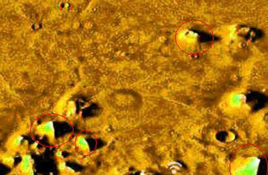 1987年,前苏联科学家阿温斯基在检查火星照片时,曾在火星上的大石像周围,发现11座金字塔式建筑,4个大的,7年小的。 美科学家对该照片重新进行计算机处理后,不仅保留了原来发现的11个金字塔, 而且还分离出19座建筑物和复杂的道路,以及一个直径达1公里的圆形广场,其规模如同一个大城市。 证实“火星城市”之说确是事实,既然”火星城市”真的存在,那么建造这些城市的火星人有去往何处了?从照片上分析,这道路、建筑物的历史不会超一万年。 因为时间太长了,火星上的风沙尘埃会将其磨尽的。