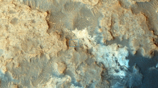 2011年,美国发射的好奇号探测器拍摄到这样的照片,图中是“好奇号”对着地面拍摄自己影子的情景。但令人震惊的是,图中竟然还有一个疑似是人类的影子。图中,这个“人类”的影子可以显示出,他正倚靠在“好奇号”上,好似是在“拨弄”或在“维修”“好奇号”。而且从影子中可以看出,这个“人类”身着类似宇航服的设备,身背疑似氧气罐的东西,但并没有佩戴头盔。报道指出,这张图片一经公布,便掀起了科学界和天文爱好者的热议。有人相信这就是火星上有生命存在的最好证据。