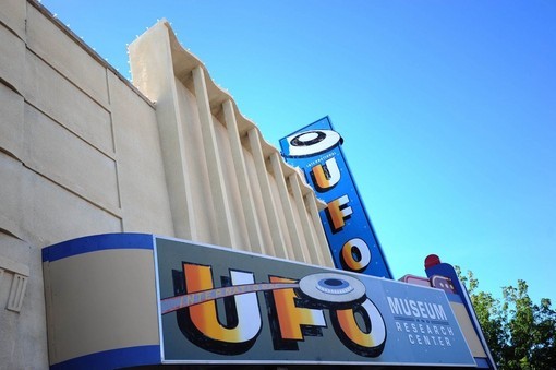 美国UFO博物馆坐落于新墨西哥州罗斯威尔市,缘于震惊世界的“罗斯威尔UFO”事件,该博物馆在罗斯威尔市一座废弃的电影院里,室内装潢设施简朴,许多旧的陈设犹如小成本电影布景。