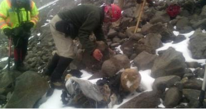 人们在发现第一具登山者的尸体时,先是发现了它的头骨,那个头骨距山顶约有1000英尺。在此之后,一群民防登山客组成了搜寻队,对这片山区进行了一次搜索,在搜索中,搜寻队们偶然发现了埋在冰雪中的第二具尸体。