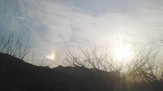 随后,记者致电气象台,工作人员告诉记者,这个发光点不是UFO,而是“幻日”现象。“幻日”是大气的一种光学折射现象。在天空出现的半透明薄云里面,飘浮着许多六角形柱状的冰晶体,当太阳光照射到这些冰柱上时,就会发生非常规律的折射现象,从而形成这种自然现象。