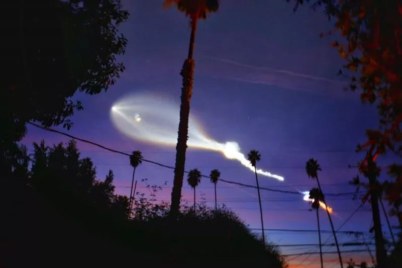 是核弹?外星人?或是政府的秘密项目?其实这样难得一见的现象产生的原因是由于SpaceX 猎鹰9号的发射任务。