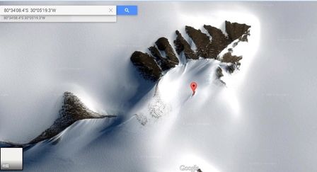 任何人都可以用座标80 34'08.4"S、 30 05'19.3"W的搜索方法,在谷歌地图上找到这个影像。德特列夫解释道:“在周围连续不断的冰原地带,这个影像显示出那是一个典型形状的真正的UFO。”