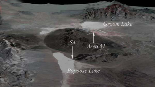 Lazar无法确实指出S4基地的位址因为他与他的同事都是乘坐一台黑色窗户的公车去上班。这设施有9个飞机库,角度与山的形状自然符合,而且被周遭的欢竟掩护的很好。里面的科学家与小灰人一起工作,他们有一个未知的共同目标。